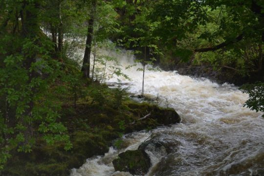 Regenverhangen und wie mit verwischten Wasserfarben gemalt präsentiert sich uns der Snowdonia National Park. Wir gehen ein kleines Stück dem Rhaeadr Ddu and Coed Ganllwyd Walk entlang, durch ein verwunschen vermoostes Waldstückchen mit mehreren wild schäumenden Wasserfällen.