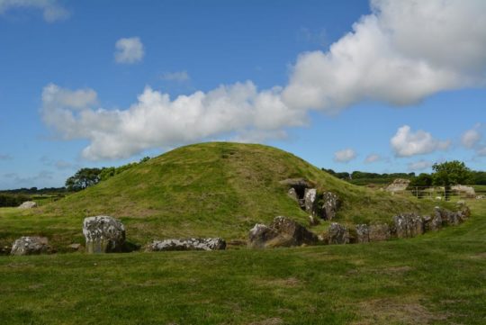 Das neolithische Ganggrab Bryn Celli Ddu (ca. 3000 v. Chr.) besteht aus einem Grabhügel, der von einem Henge (Graben) umgeben ist. Die Eingangspassage ist auf die Sommersonnenwende ausgerichtet, immer um den 21. Juni herum fällt das Sonnenlicht genau in die Grabkammer und erleuchtet sie. Hinter dem Grabhügel steht ein Positionsstein, in den ein Schlangenmotiv eingeritzt…