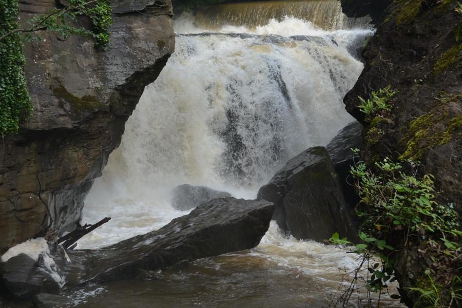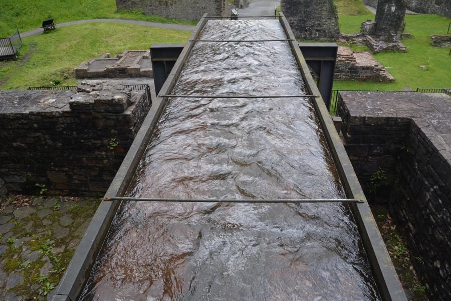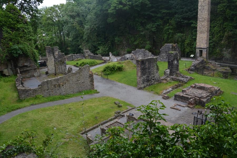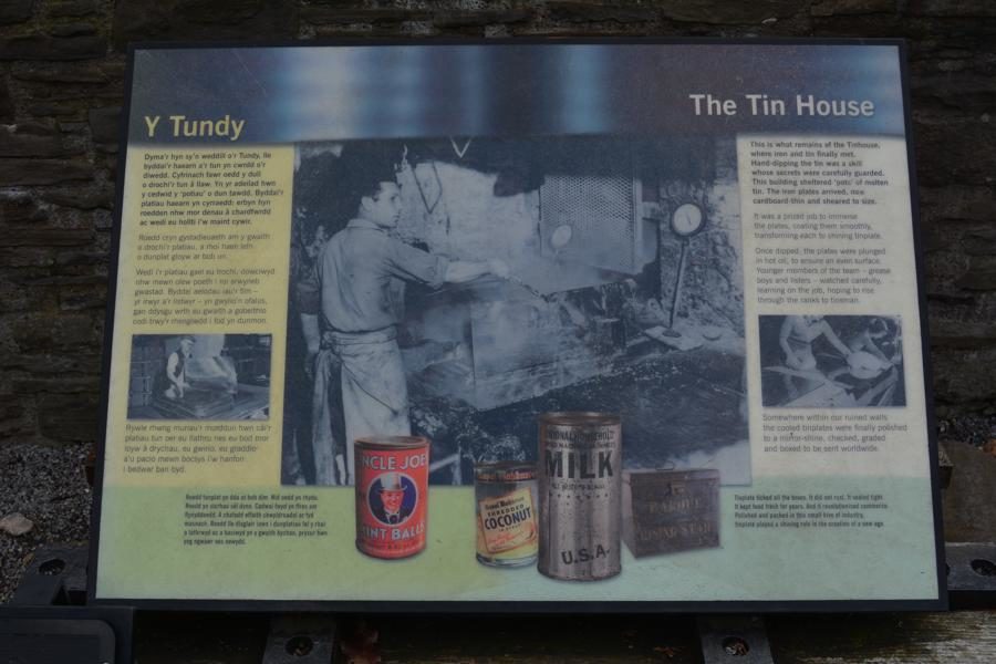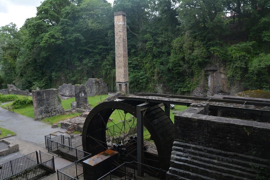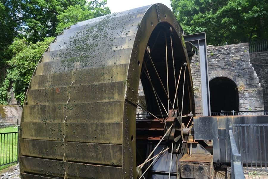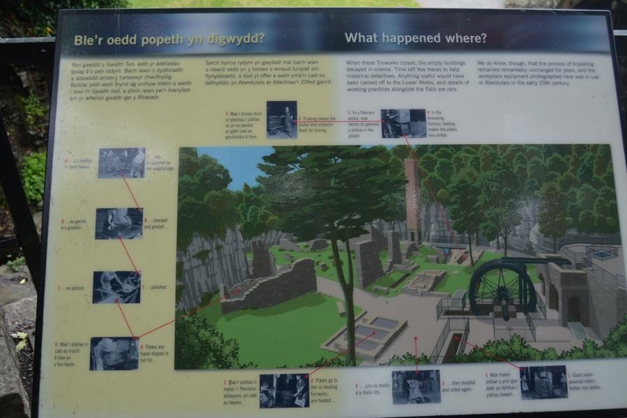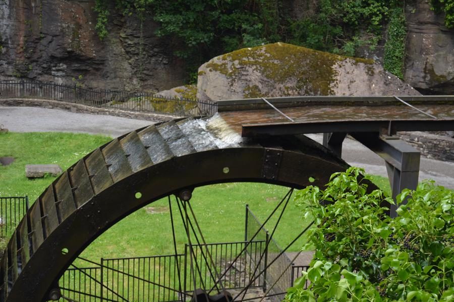 Wir besuchen die Aberdulais Tin Works, die Ruine einer ehemaligen Verzinnerei, in der bis ca. 1850 Eisenplatten verzinnt wurden. Dies war im 19. Jahrhundert eine der häufigsten Industrien in Wales. Die Aberdulais Verzinnerei wurde von Wasserkraft angetrieben – das originale Wasserrad aus dem 19. Jahrhundert steht noch immer auf dem Gelände und produziert Strom. Vor den Tin Works gab es bereits seit dem 16. Jahrhundert metallverarbeitende Industrien auf dem Gelände, unter anderm eine Kupferschmelzanlage.