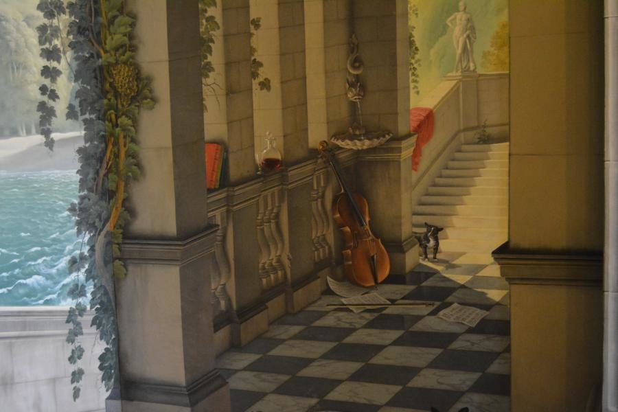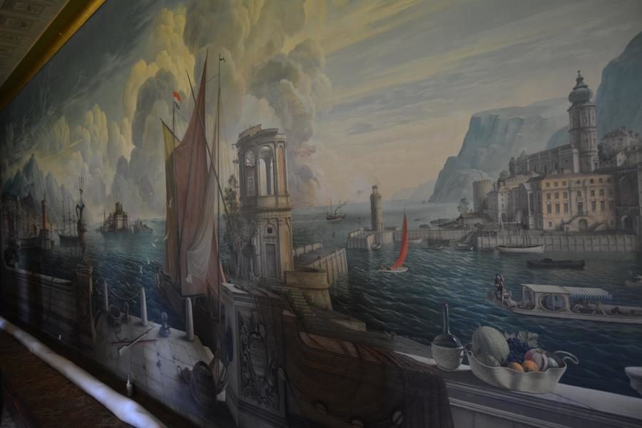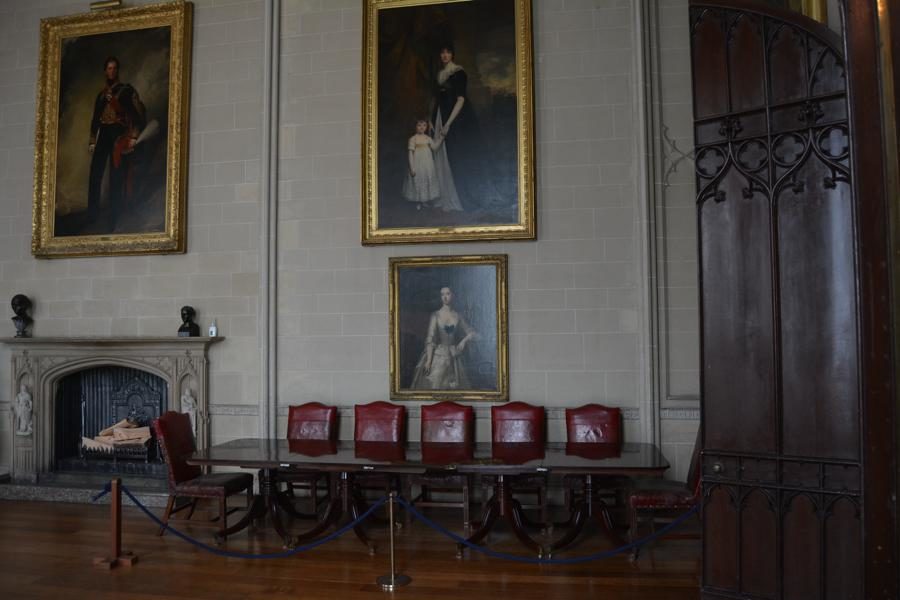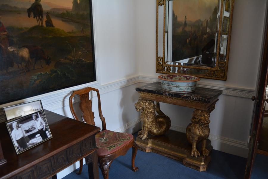 Es regnet und regnet… Doch dank unserer Mitgliedschaft im National Trust können wir ja jederzeit irgendein Schloss besuchen! Unsere Wahl fällt auf Plas Newydd, das Schloss der Marchess-Familie von Anglesey. Es strahlt Behaglichkeit aus. Und das Wandgemälde von Rex Whistler ist mit seinen „Trompe-d’Oeil“-Effekten wirklich verblüffend.